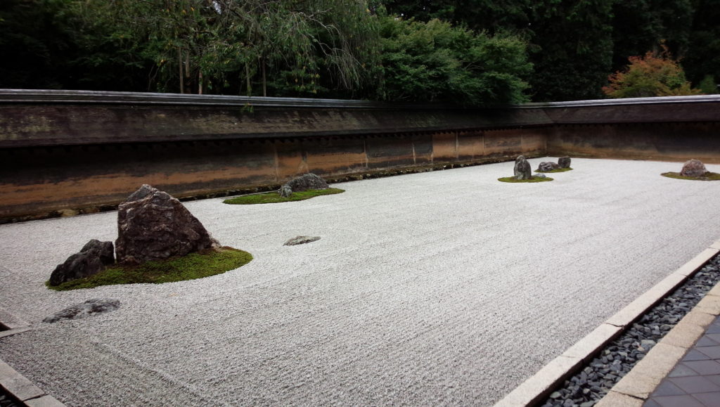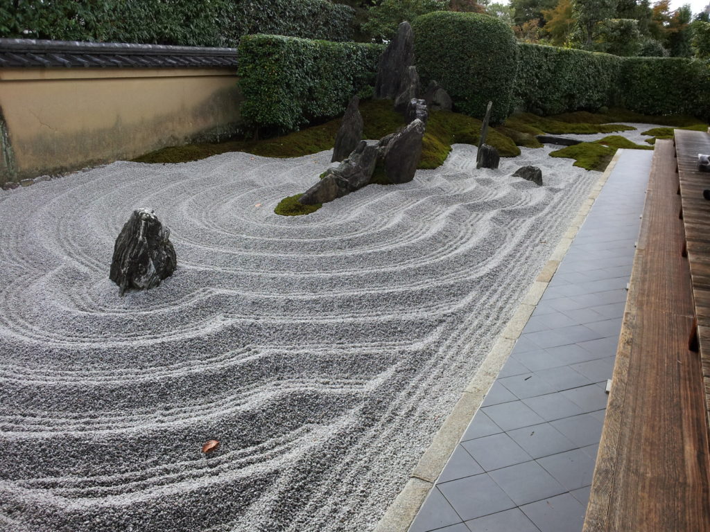 いわずと知れた日本最古にして最も有名な石庭であり、歴史の授業で習った人も多かろう。作者が無名ということが信じられないほどの完成度を誇り、計算しつくされて配置された石が庭の中に気勢の循環を鮮やかに映し出す。まさに一つの小宇宙だ。なお、「虎の子渡し」説は諸説の中の一つであることは覚えておこう。