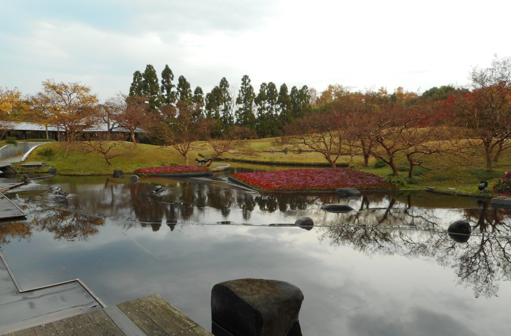 知る人ぞ知る通称朱雀の庭。一応鉄道博物館方面に進んでいく進路にあるのだが、存在感はあまりに儚い。従来の庭園の設計に幾何学的な直線や曲線を取り入れた野心的な試みは、モダンな雰囲気の域を超え、庭園の定義を捉えなおす新しい作品として輝きを放つ。