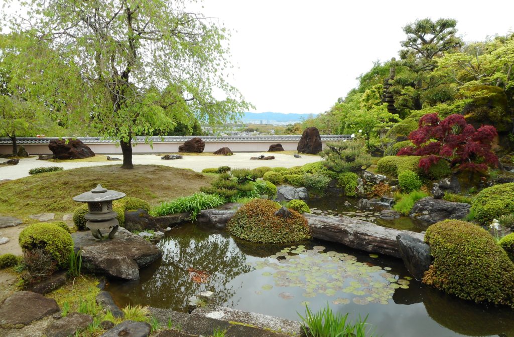 重森三玲、完途親子による連作。曲水の庭、即興の庭、上古の庭、蓬莱の庭の4つが鑑賞可能。一つ一つの庭にそれぞれの良さがあり、贅沢なアトラクションを体験できる。個人的には池泉回遊式で、見る角度によって姿が多様な変化をみせる蓬莱の庭が一押し。