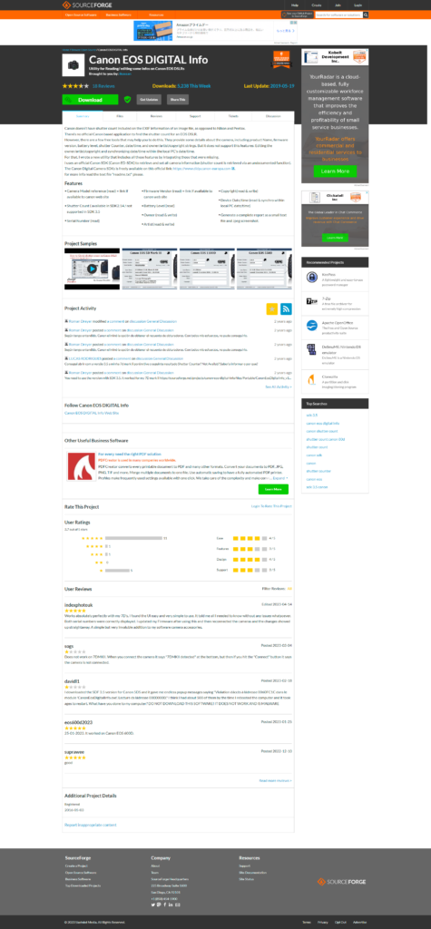 「Canon EOS DIGITAL Info Ver.1.3」というソフトを利用すれば、簡単にシャッター枚数を調べることができました!