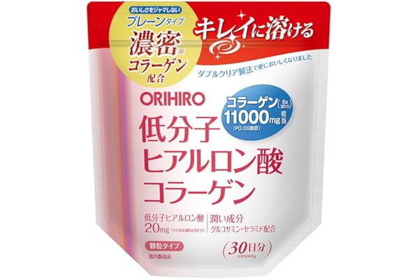 | オリヒロ 低分子ヒアルロン酸 コラーゲン | 180g | 1,313円 | 粉末 | 健康 食品 | 6g | 11000 mg | 〇 |