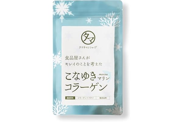 タマチャンショップ こなゆきマリンコラーゲンは、北海道産鮭皮由来100%の魚由来のコラーゲンパウダー。国産の純粋なマリンコラーゲンペプチドのみを使用し、余計な添加物を一切使用していないので、コラーゲン本来の力をシンプルに実感したい方におすすめです。
